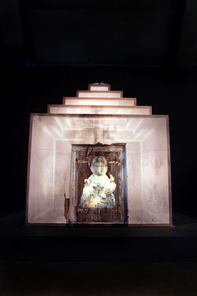 Valokuvaveistos on lähes 1:1 oikean temppelin kanssa. Näyttelyssä temppeli on tummassa tilassa, jossa on kaksi erilaista valon vaihetta, päivä ja yö. Päivävalossa temppeli näyttäytyy yksinkertaisena valkoisena muotona. Yövalaistuksessa valot sammuvat tilasta ja temppelistä jää näkyviin musta kehikko. Temppelin sisällä oleva valokuvaveistos norsujumala Ganeshasta tulee näkyviin.