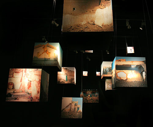 Tilateos, joka muodostuu kolmesta pyöreästä huoneesta. Kunkin huoneen seinille on tulostettu 360° panoraamakuva. Ensimmäisessä huoneessa on kuvattu pyöreä maja sisältä päin. Toisessa huoneessa on näkymä sisäpihalta. Kolmannessa tilassa on maisema temppeliaukiolta. Tässä tilassa tapahtuu myös visuaalinen muutos. Näkymä pysyy muuttumattomana jonkin aikaa, sen jälkeen katsojan ympärille ilmestyy kylän miehiä. Hetken kuluttua hahmot katoavat ja maisema palautuu ennalleen.